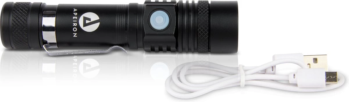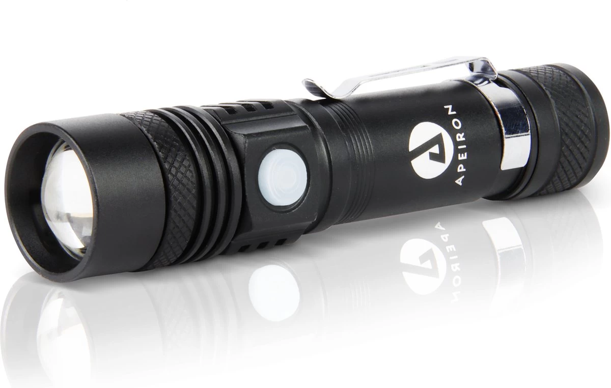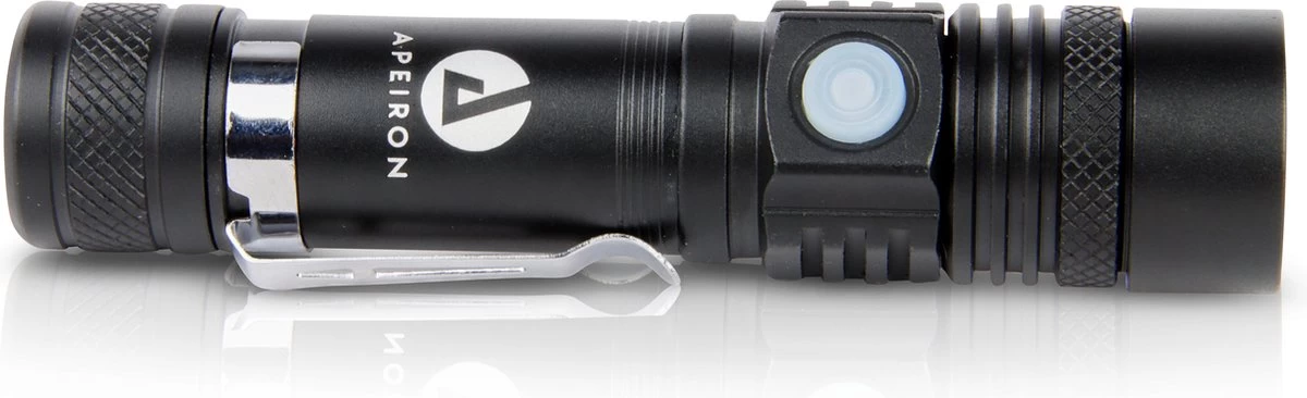 Met deze zaklamp van Apeiron kunt u een felle licht uitstralen! De multifunctionele Apeiron zaklamp straalt een fel licht uit waardoor u een groot gebied kan verlichten.
