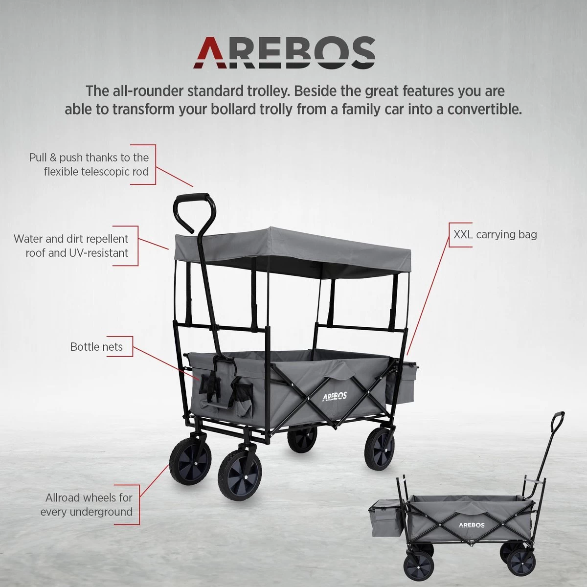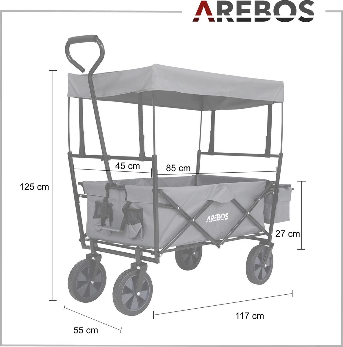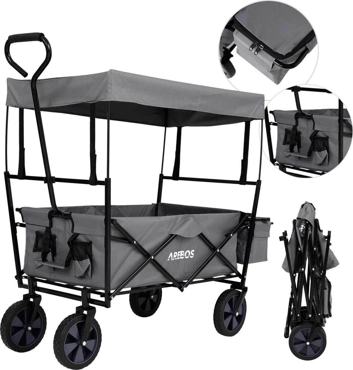 AREBOS Handwagen Vouwbare Dak Handwagen Vouwbare Trolley Uitrustingswagen Grijs