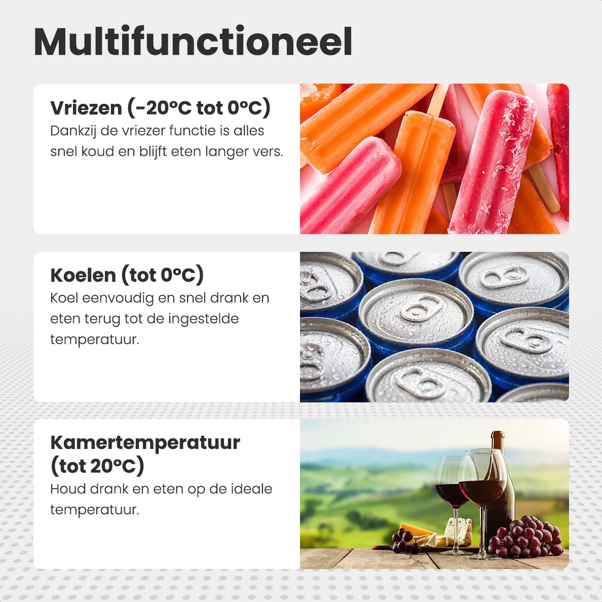 - 40,5L inhoud. Ruimte voor 48 blikjes