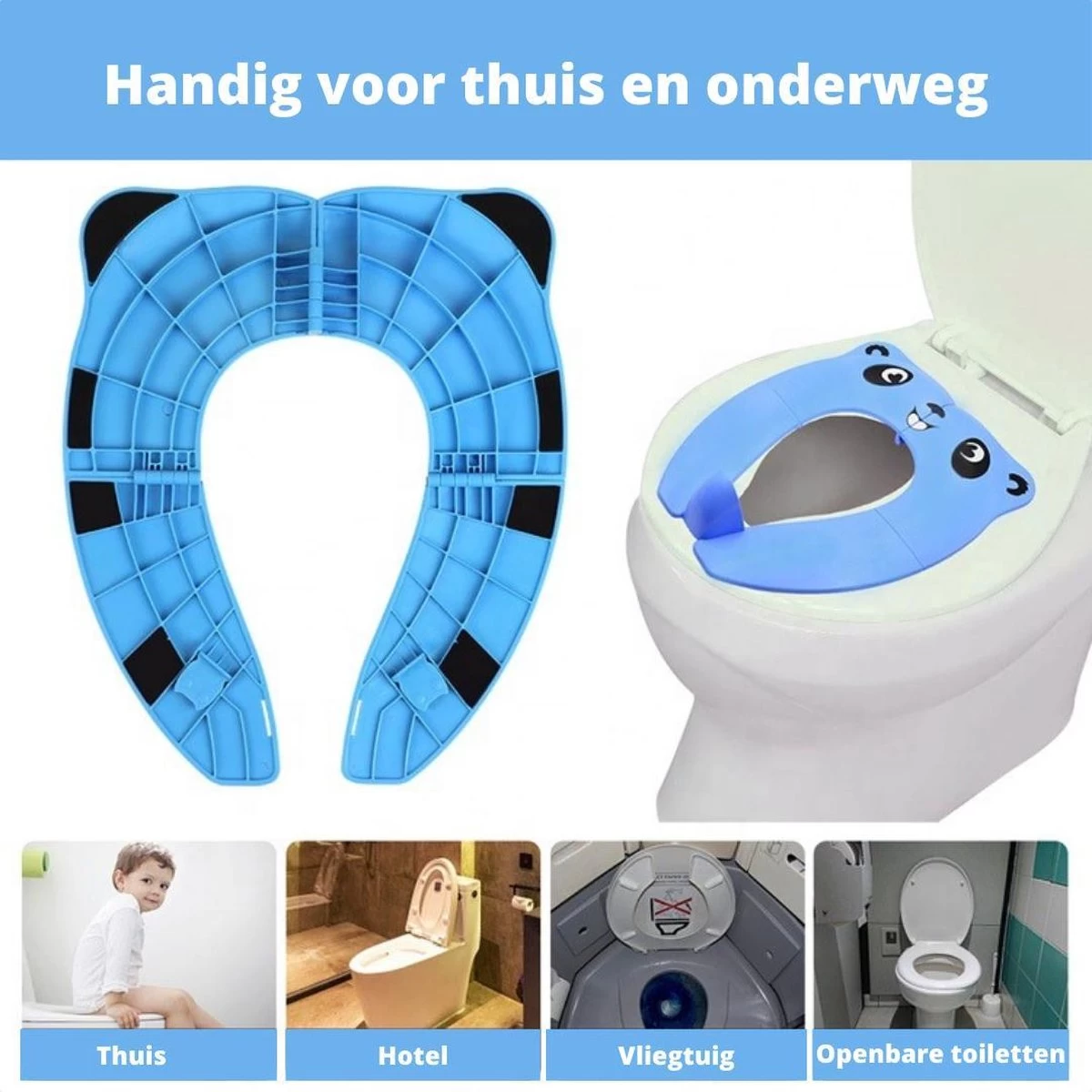 Blauwe Opvouwbare Toilet Zitje – WC Verkleiner – WC Bril Verkleiner- Urinoirs Kind – Toilet Training – Plas Trainer Zitje – Reis Accessoires – Camping Toilet Zitje – Toilet Verkleiner – Toilet Bril Verkleiner
