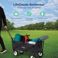LifeGoods Bolderkar – Opvouwbaar – Tot 80KG – 94L – Wasbaar Polyester – 98x45cm – Zwart/Grijs