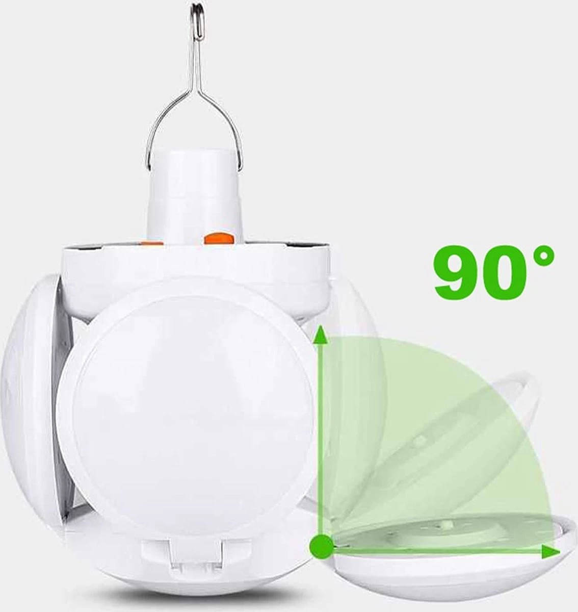 Draaihoek, gehumaniseerd ontwerp, kan 90 graden worden opgevouwen. 360 graden brede helderheid. De draagbare hardmetalen haak kan op verschillende plaatsen worden opgehangen.