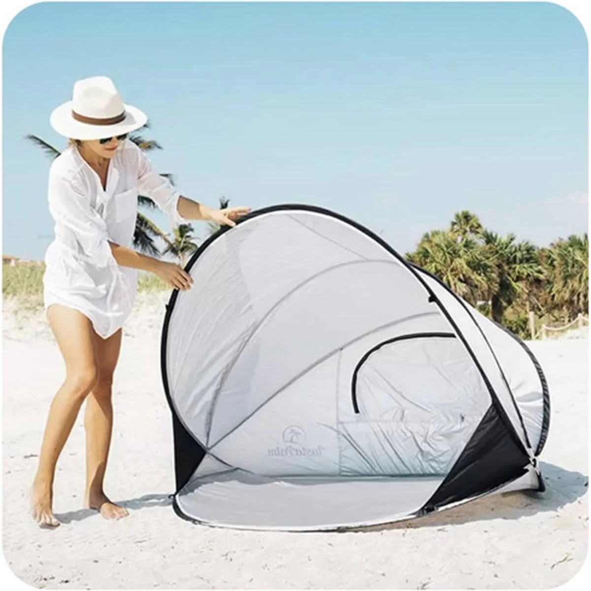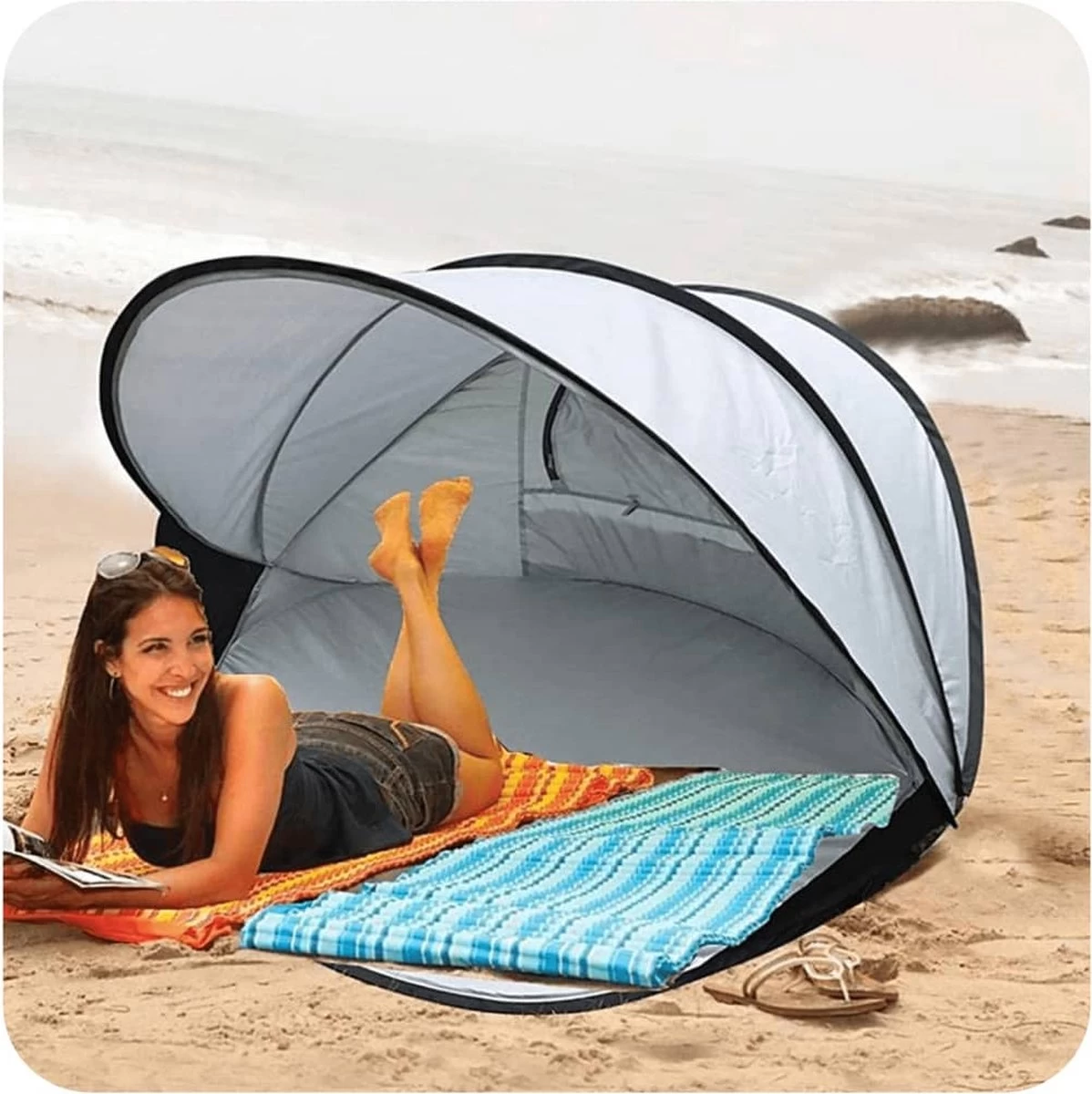 Deze XXL, polyester en mesh, pop-up strandtent van DERYAN beschermt jou en je kinderen tijdens het slapen, spelen en relaxen op het strand!