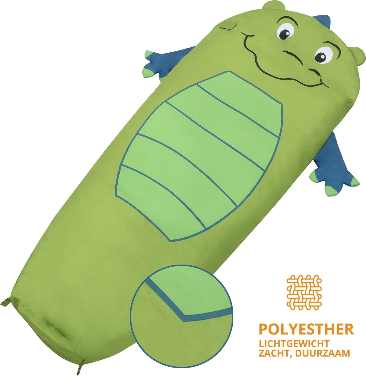Geen gevaarlijke koordjes of gevaarlijke ritsen. De slaapzak is ontworpen met kind veilige specificaties. De rits kan op beide zijden opengeritst worden en een klittenband stopper aan de bovenzijde, beperkt het warmteverlies, omdat de rits tijdens het woelen niet verder opengespleten wordt.