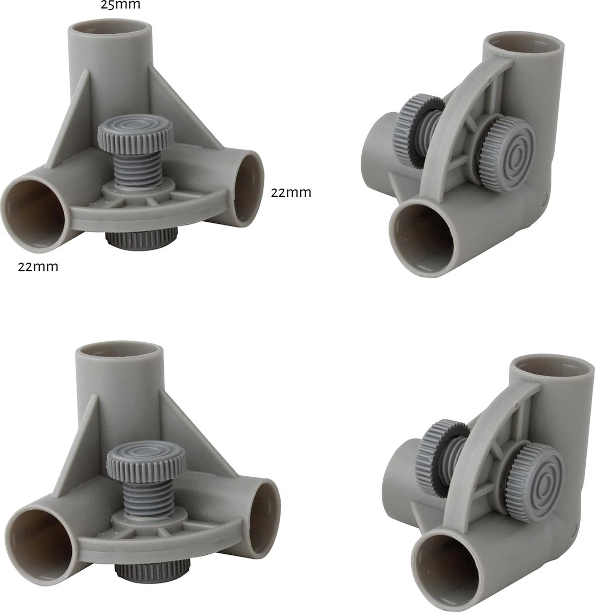 Elk hoekstuk is multifunctioneel, dus zowel als voetje als ook als hoekstuk voor aan de bovenkant te gebruiken. Simpelweg het voetje indraaien en klaar.