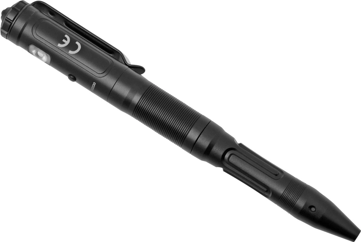 * Deze tactische pen beschikt over onder andere een LED-lampje en een ceramisch gecoat puntje om glas mee te breken. De lamp is gemakkelijk op te laden via usb-c.