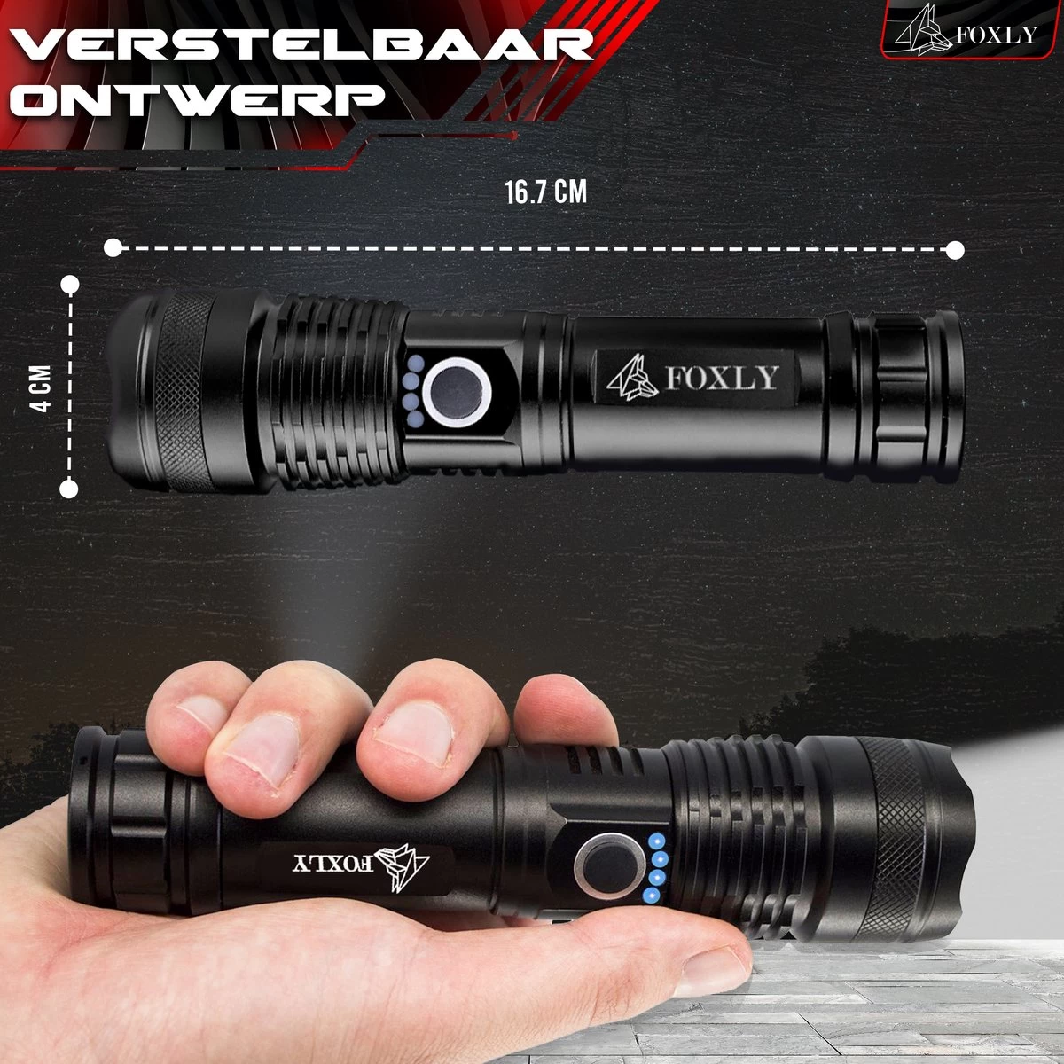 Druk op de winkelwagen om jouw nieuwe avonturen samen aan te gaan met de FOXLY militaire zaklamp!