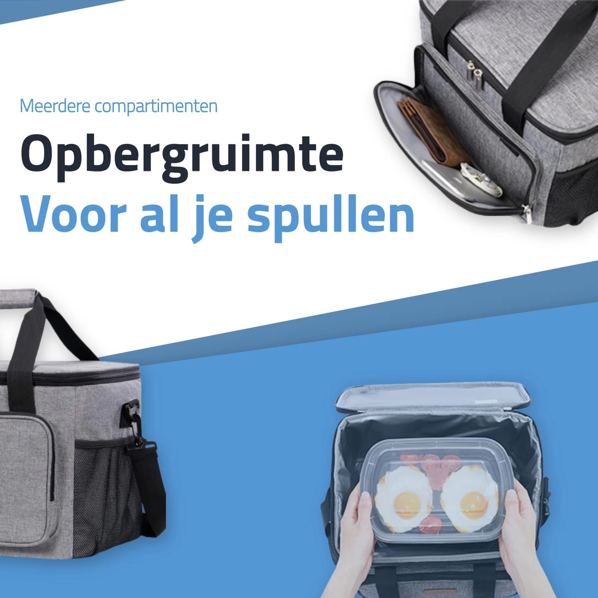 Naast de koeltas te gebruiken voor het koud houden van jouw dranken en verse salade, hou je ook jouw dranken, lunch of avondeten warm. Ons 4 laags isolatiemateriaal zorgt dat jouw eten en drinken vele uren warm blijft.