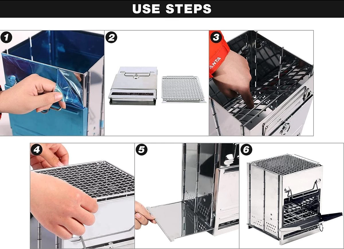 - DIVERSE BRANDSTOFFEN: de kachel accepteert verschillende brandstoffen zoals bladeren, twijgen, je kunt deze gemakkelijk in de natuur krijgen en genieten van echt wildernisplezier.