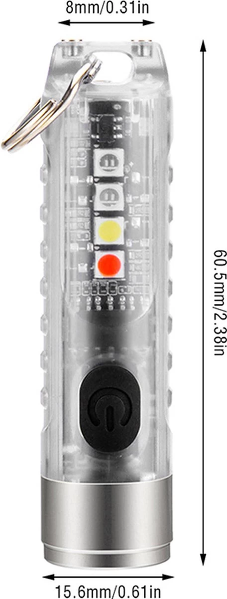 De compacte afmetingen van slechts 60,5×15.6mm en een gewicht van maar 18gr maakt deze lamp ideaal om altijd bij je te hebben, aan je sleutelbos.