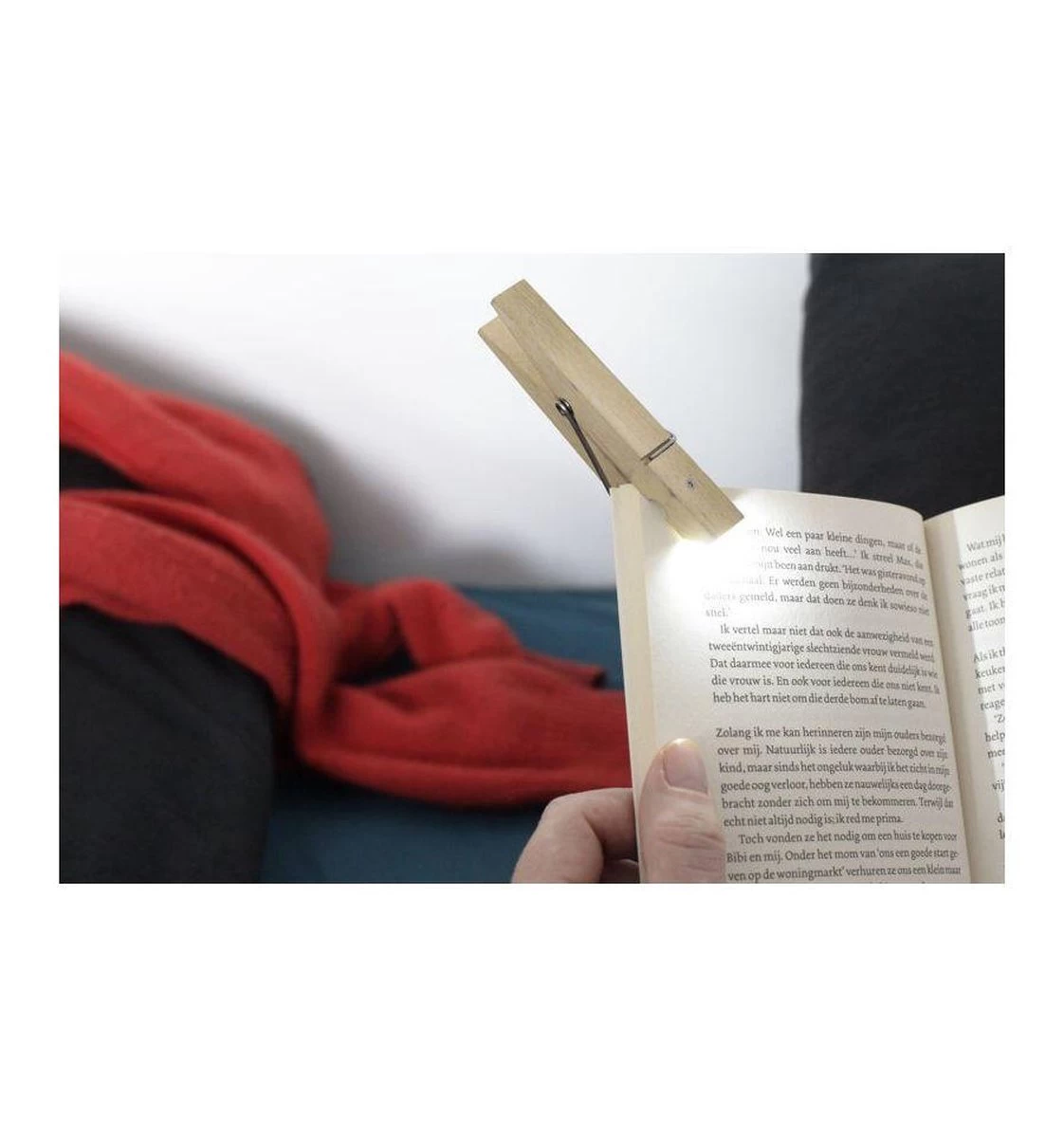 - Leeslampje in de vorm van een wasknijper