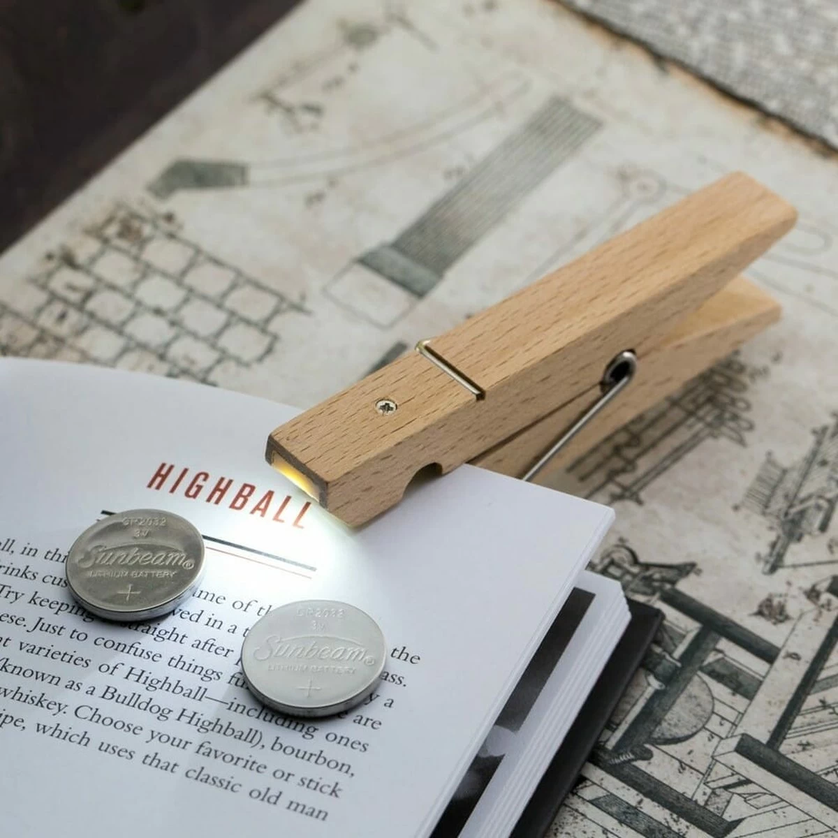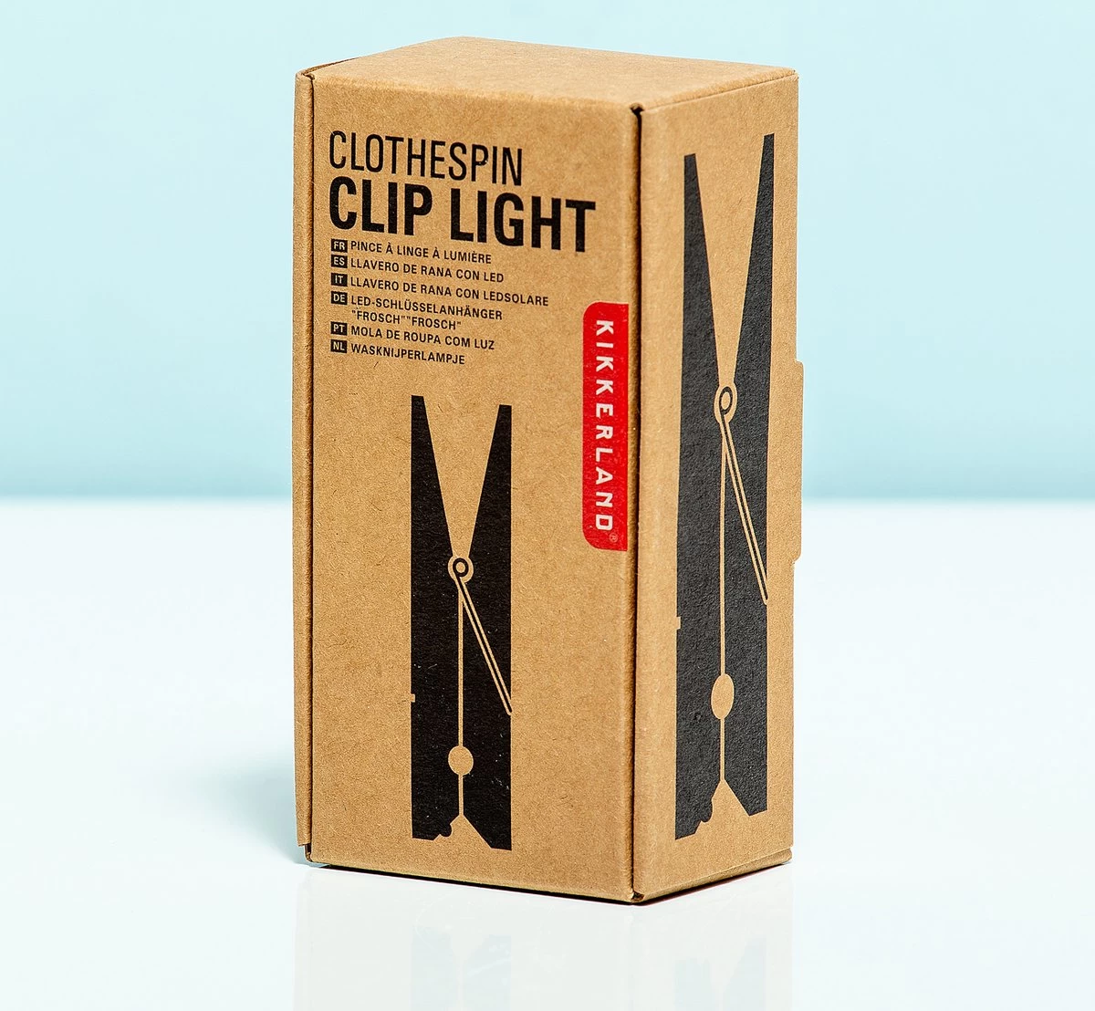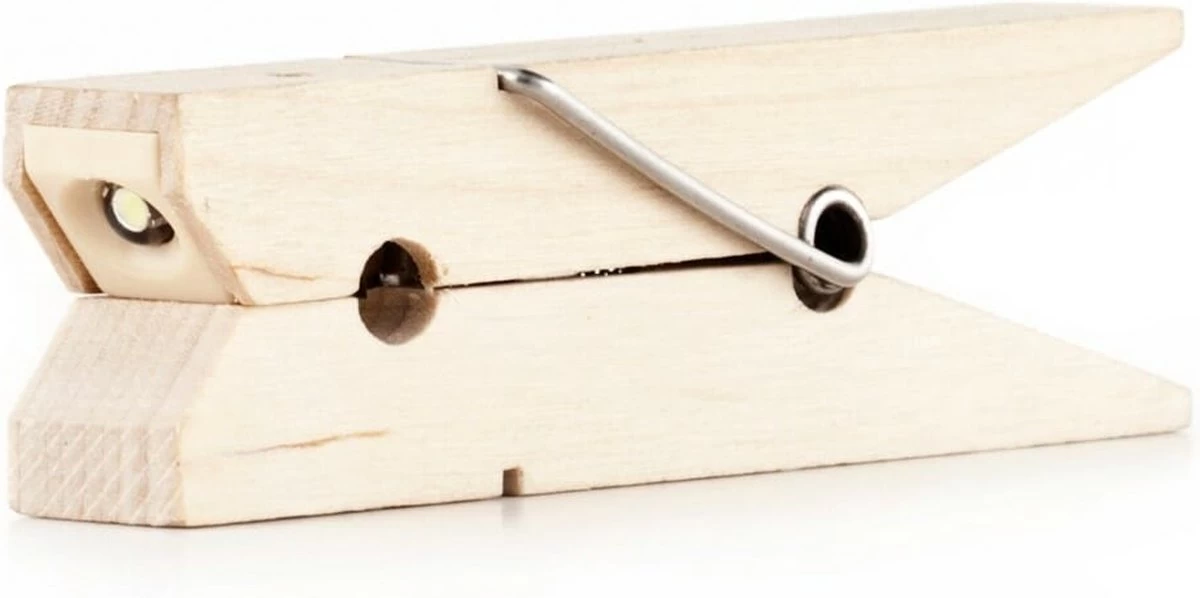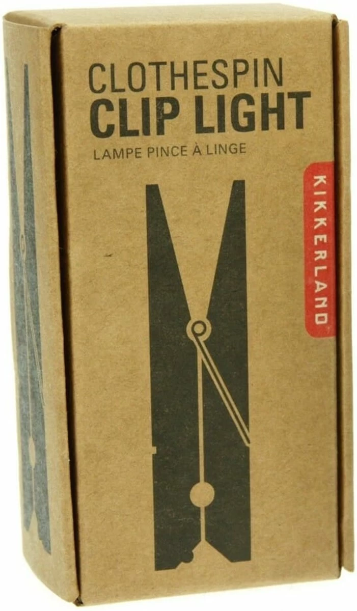 Wasknijper clip light van Kikkerland. Lampje in de vorm van een wasknijper, die je op een boek kunt clippen. De wasknijper is gemaakt van hout en is voorzien van een LED-lampje. Het is een ideaal leeslampje voor in bed, zonder dat iemand anders las heeft van het licht. Ook leuk en handig om mee te nemen op vakantie, als je bijvoorbeeld tijdens het kamperen nog wilt lezen. Het wasknijper lampje werkt op twee CR2032 batterijen (inbegrepen).