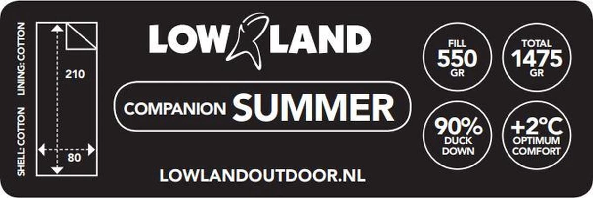 De LOWLAND OUTDOOR Companion Summer kun je net als de Companion Economy slaapzak zowel thuis als tijdens je reisavonturen gebruiken, maar is geschikter voor de wat snellere koukleumen onder ons. De slaapzak is beter isolerend omdat er tussen de binnen- en buitentijk 4 cm hoge schotjes zijn gestikt. Zo behoudt de donzen vulling -ondanks het stikwerk- haar volledige dikte over de gehele lengte van de slaapzak. Een 2-richtingrits zorgt er voor dat je twee slaapzakken knus aan elkaar kan ritsen; maar wordt het je toch te warm, dan kan je de slaapzak aan je voeten losritsen en krijg je extra ventilatie.