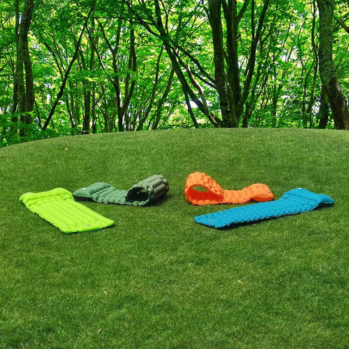 - Slechts 60 seconden stomp to opblazen: druk op het luchtbed op de camping met de hand of op de voet. Niet meer met de mond, de handen opblazen of een pomp dragen, druk gewoon op de ingebouwde luchtpomp aan de onderkant van de zelfopblazende isomat om hem in minder dan 60 seconden op te blazen.