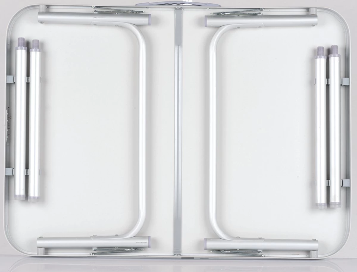 Het frame van de campingtafel is gemaakt van lichtgewicht aluminium, waardoor hij superlicht is en makkelijk mee te nemen. Het handvat aan de zijkant maakt het dragen nog gemakkelijker. Wanneer je de tafel niet meer nodig hebt, kun je hem eenvoudig inklappen. Het compacte formaat zorgt ervoor dat de tafel weinig ruimte inneemt tijdens het transporteren of opbergen.