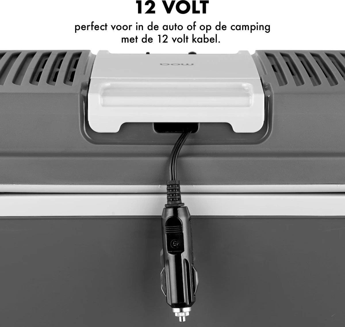 Met de MOA Koelbox kun je eten en drinken verkoelen tot maximaal 20 graden onder de omgevingstemperatuur. Ook kun je eten warm houden tot een temperatuur van maximaal 65 graden. Daarnaast kun je de koelbox aansluiten op in de auto op 12V, maar ook binnen op elektriciteit van 230V.