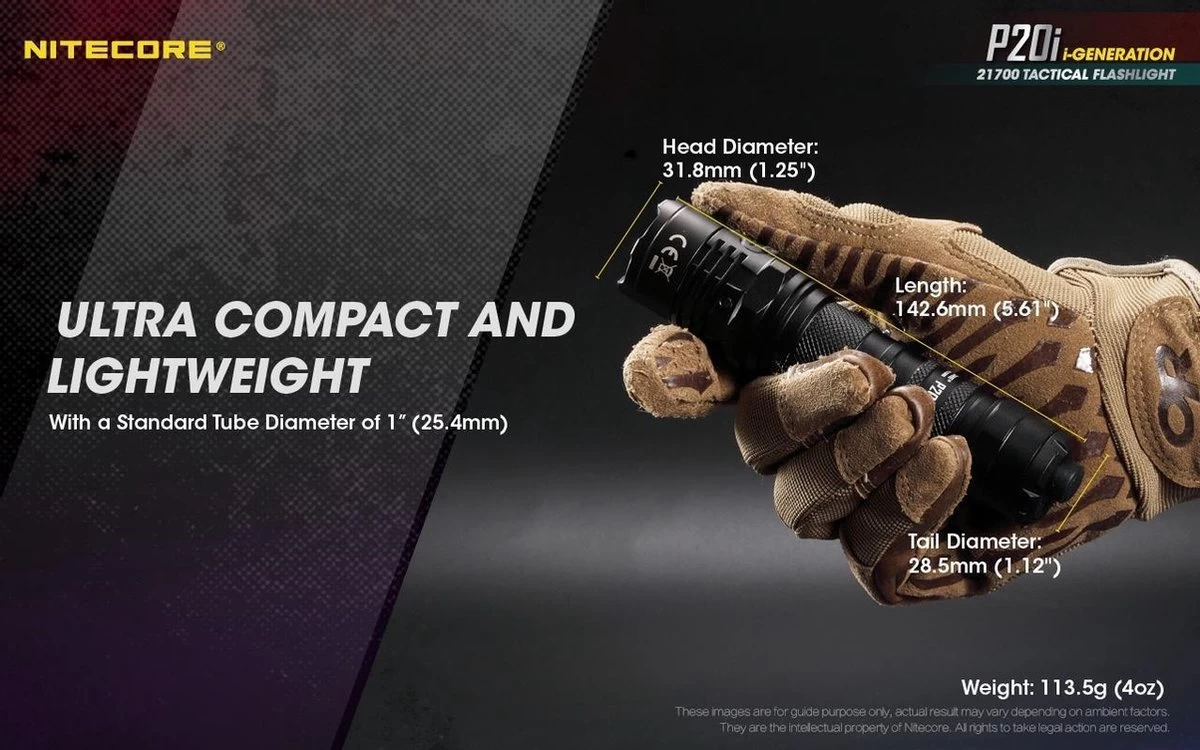 Een zaklamp die geschikt is voor tactische- en militaire activiteiten, beveiligingsbeambten maar ook voor alle outdoor activiteiteiten. De zaklamp werkt op een iplaadbare 21700 – Li-Ion batterij (NL2140i, 4000 mAh) (meegeleverd) maar is ook compatibel met 2x CR123 of 2x RCR123 batterijen (niet meegeleverd), hou hierbij wel rekening dat de maximale output wel lager is dan met de meegeleverde 21700 batterij.
