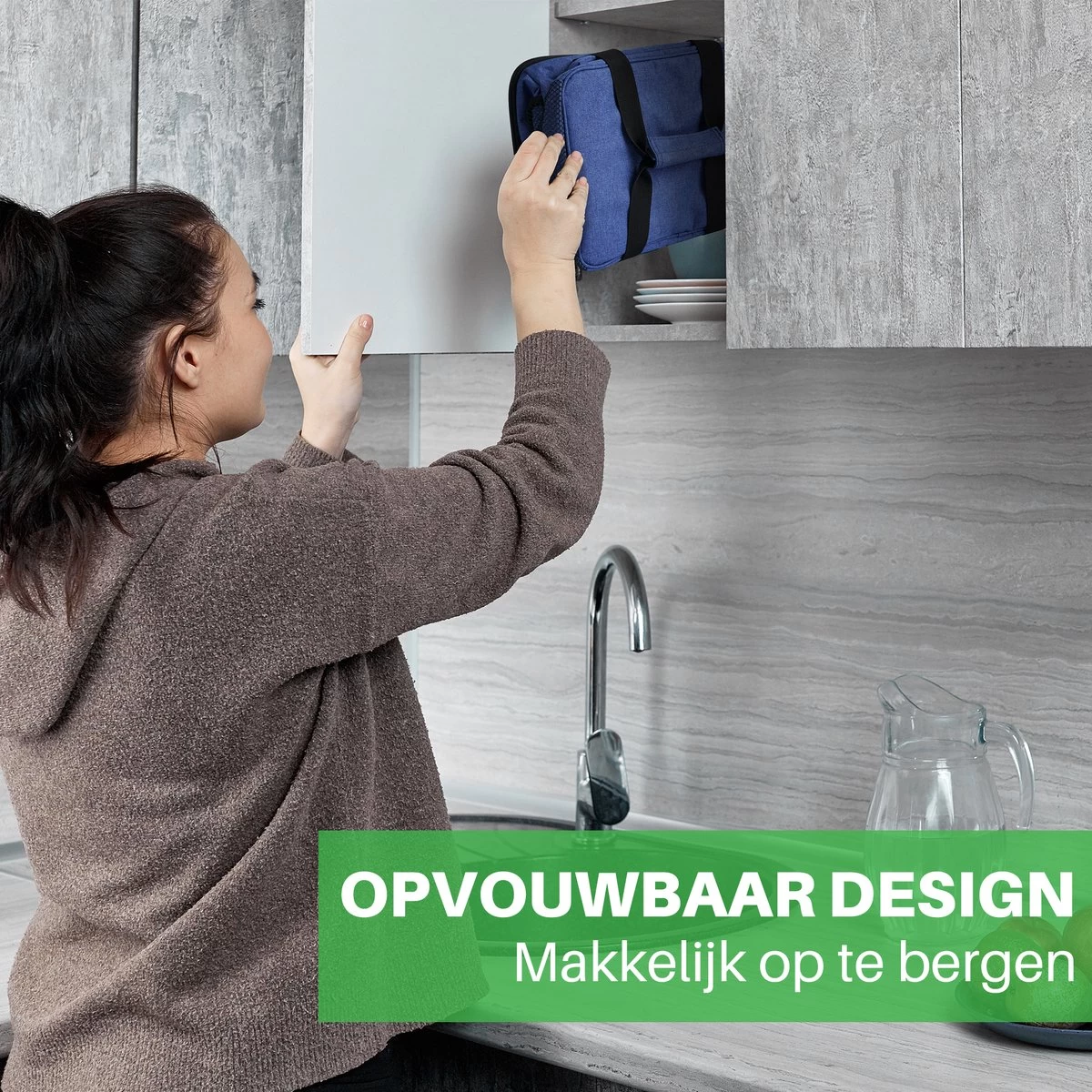 OPBERGEN: Opvouwbare tas met een hoogte van 7 cm, waardoor u de tas gemakkelijk kunt opbergen.