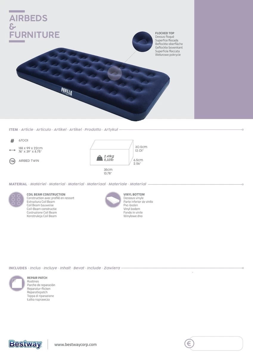 - Bestway artikelnummer: 67001