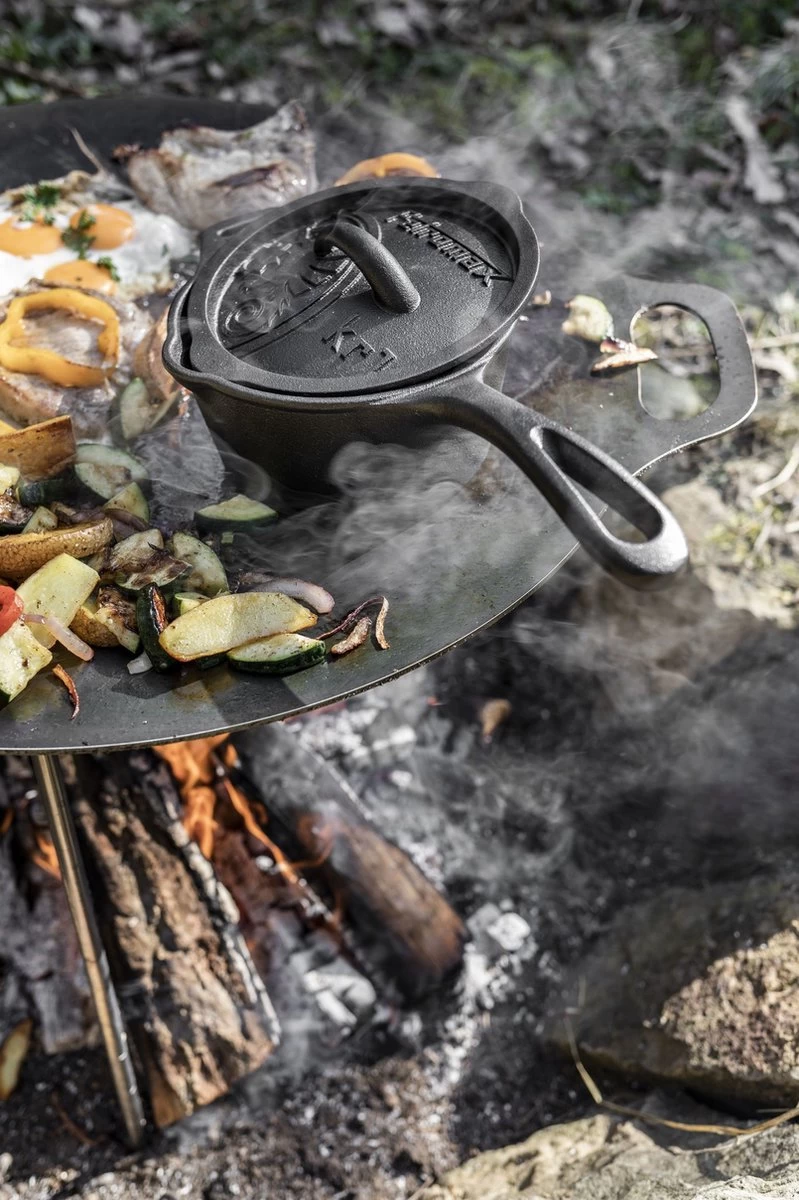 De gietijzeren braadpan is een pan met een platte bodem en handvat die het hanteren boven een open vuur of fornuis bijzonder gemakkelijk maakt. Gestoofde of gekookte vlees- en visvariaties, hartige stoofschotels of klassieke sauzen zullen zeker een schot in de roos zijn. Met de braadpan profiteert elk gerecht van de smaakintensiteit die hoort bij het bereiden van gerechten in gietijzeren kookapparatuur.