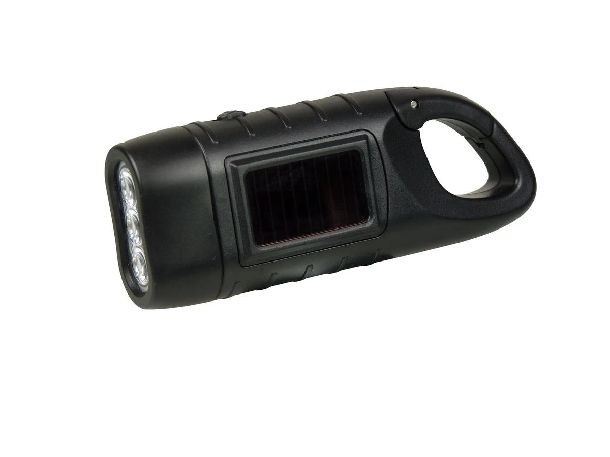Krachtige 3 LED zaklamp met geintegreerde karabijnhaak voor eenvoudig vervoer aan broekriem, tas etc.