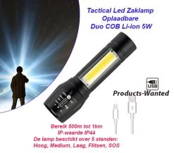 2 Stuks – Zaklamp Oplaadbaar 2000 Lumen – Waterproof – Zeer Fel – Klein – 2 In 1 – Led –