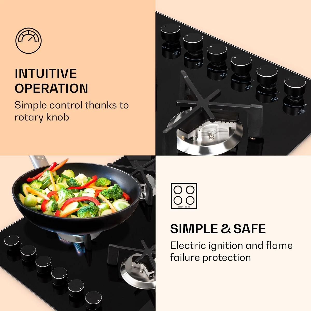 Trifecta 6 Gaskookplaat 6-pits Grote, Normale En Extra Glaskeramische Branders