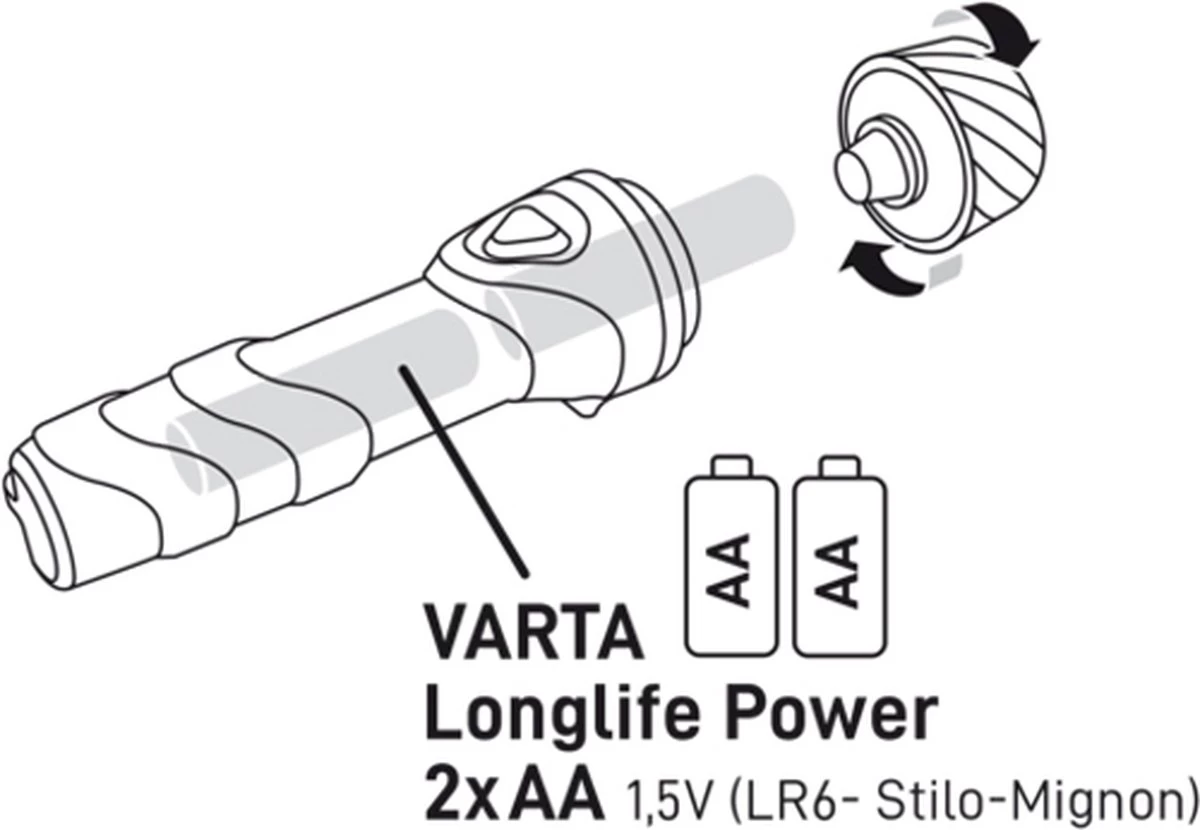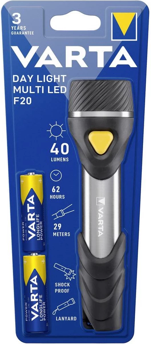 Varta F20 Day Light Multi LED Zaklamp – Zwart/Zilver