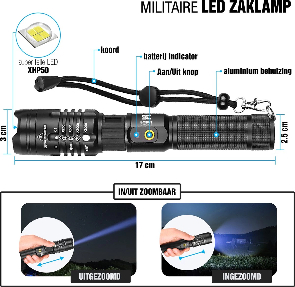 Deze zaklamp beschikt over dezelfde LED-Technologie die Amerikaanse Navy Seals, politieagenten en reddingsbrigades gebruiken!