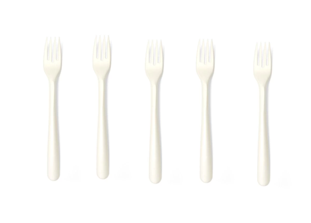 - Herbruikbare witte vorken gemaakt van hernieuwbare grondstoffen.